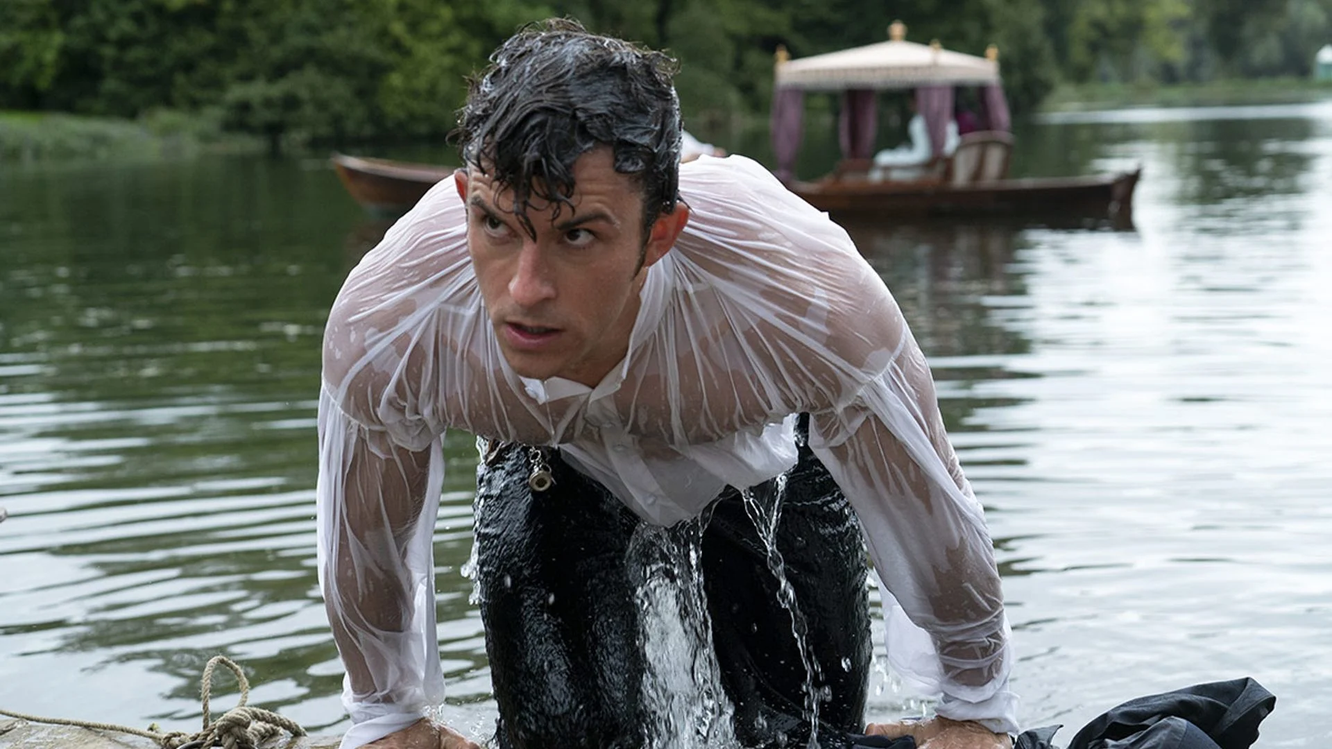 A: He gained international fame for portraying Anthony Bridgerton in the Netflix series Bridgerton.